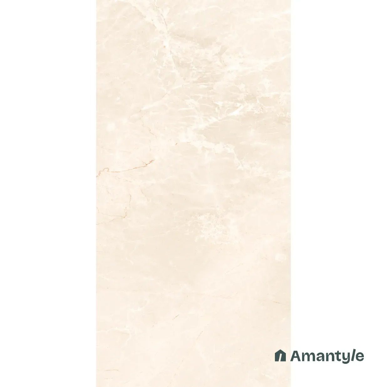 This Marble look tile radiates with a bright beige base, beautifully laced with delicate white spider-web veins that create an illusion of endless depth, accented by a subtle hint of dark brown for a touch of timeless elegance. Its elegant design makes it a top-selling favorite in market and comes in a radiant high-gloss finish, This vitrified tile offers both style and durability. As it has flexible body, it is Highly scartch resistant, stain-resistant, fire-resistant and easy to install.