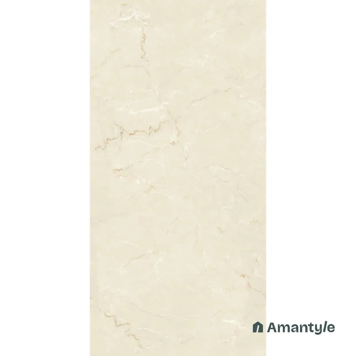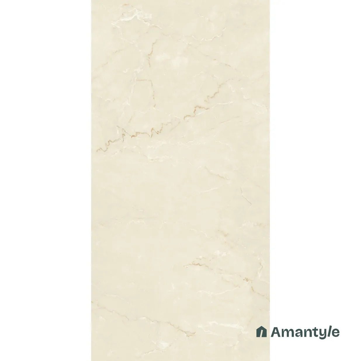 This Marble look tile showcases a light beige base, accented by sleek dark brown veins flowing throughout and a splash of white tinges, creating a refined classic marble look with a modern twist. Its elegant design makes it a top-selling favorite in market and comes in a radiant high-gloss finish, This vitrified tile offers both style and durability. As it has flexible body, it is Highly scartch resistant, stain-resistant, fire-resistant and easy to install.