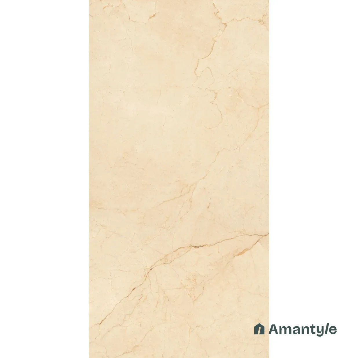 This Marble look tile features a luxurious light beige base, adorned with subtle rust-brown veins flowing gracefully across its surface, delivering a classic marble look that embodies elegance and refined charm. Its elegant design makes it a top-selling favorite in market and comes in a radiant high-gloss finish, This vitrified tile offers both style and durability. As it has flexible body, it is Highly scartch resistant, stain-resistant, fire-resistant and easy to install.