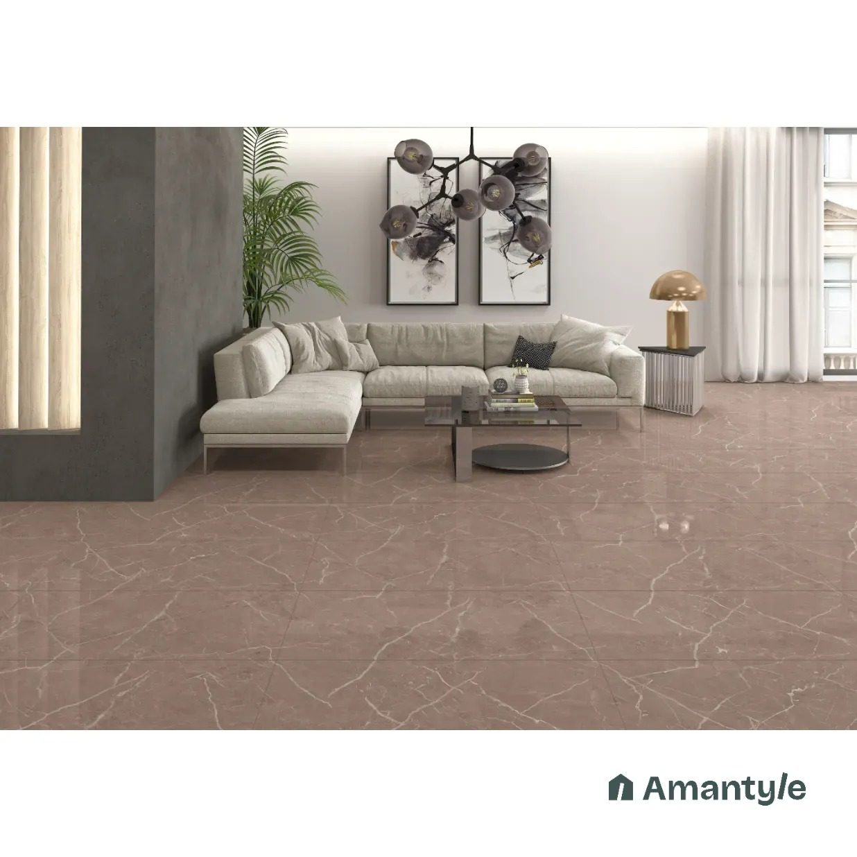 This marble look tile boasts a rich brown base, accented by soft white veins and a deep brownish-grey tinge throughout, delivering a classic marble look with a timeless elegance that’s perfect for any sophisticated space. Its elegant design makes it a top-selling favorite in market and comes in a radiant high-gloss finish, This vitrified tile offers both style and durability. As it has flexible body, it is Highly scartch resistant, stain-resistant, fire-resistant and easy to install.