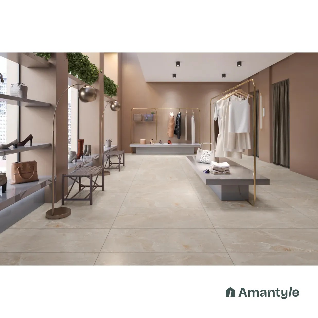 This Color Body tile features a light beige base with graceful cloudy brown and sleek white streaks flowing across its surface. Known for its exceptional strength and durability, it captures timeless beauty of rustic concrete, making it a sophisticated and sturdy choice for any space. Its elegant design makes it a top-selling favorite in market and comes in a matt finish, This vitrified tile offers both style and durability. As it has flexible body, it is Highly scratch resistant, stain-resistant, fire-resistant and easy to install.