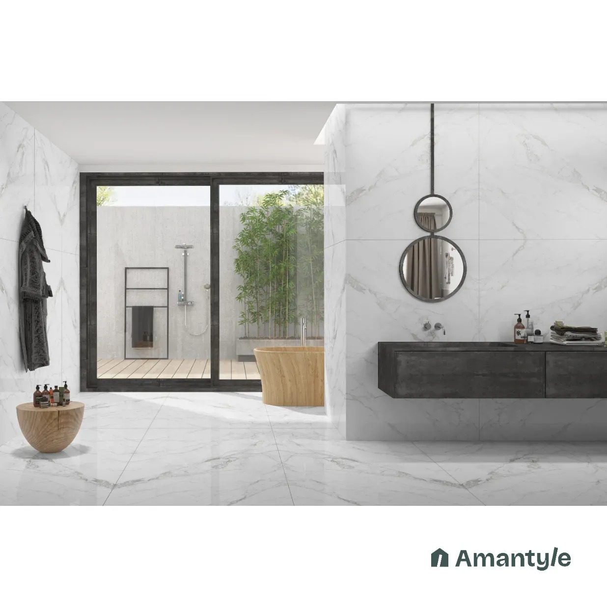 This Marble Slab tile features a pure white base, beautifully accented with thick and thin grey veins flowing across its surface in a stunning book-match pattern. Its elegant design makes it a top-selling favorite in the market, and it comes in a radiant high-gloss finish. This vitrified tile offers both style and durability. As it has flexible body, it is Highly scratch-resistant, stain-resistant, fire-resistant, and easy to install.