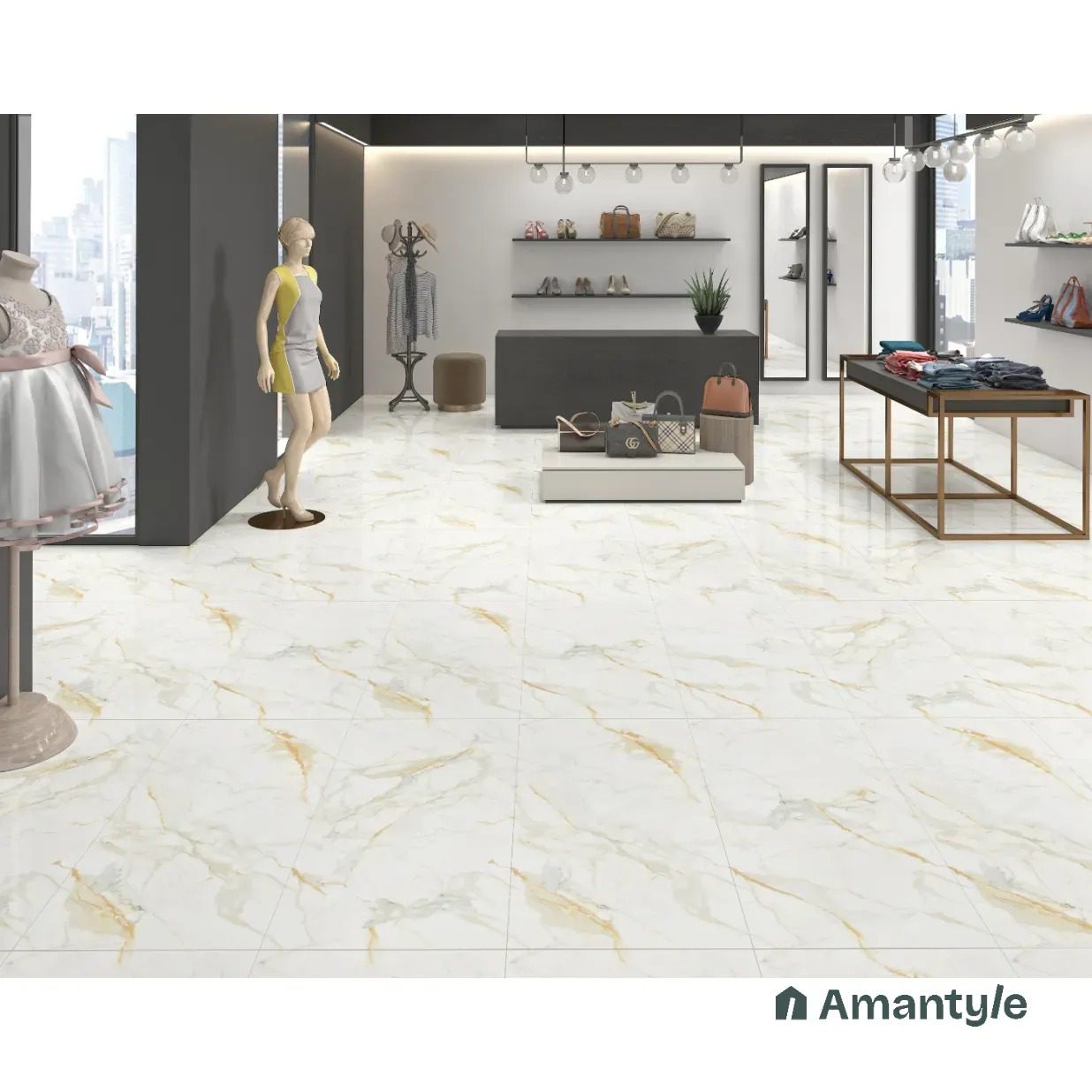 This Marble look tile boasts a pristine white base, highlighted by bold grey veins and subtle touches of natural rust, delivering a timeless marble-inspired elegance. A favorite among architects,Its elegant design makes it a top-selling favorite in market and comes in a radiant high-gloss finish, This vitrified tile offers both style and durability. As it has flexible body, it is Highly scartch resistant, stain-resistant, fire-resistant and easy to install.