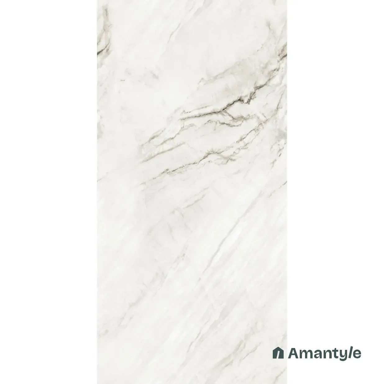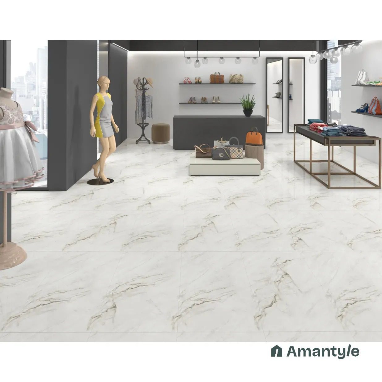 This marble look tile showcases a pristine white base, boldly accented by thick dark grey veins and soft light grey wavy patterns, creating a strikingly posh and captivating design that demands attention. Its elegant design makes it a top-selling favorite in market and comes in a radiant high-gloss finish, This vitrified tile offers both style and durability. As it has flexible body, it is Highly scartch resistant, stain-resistant, fire-resistant and easy to install.